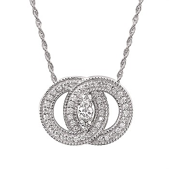 Diamond Marriage Symbol® Pendant In 14K Gold With Prong Set Millgrain Rings And 3 Diamonds Equaling 1/2 Ctw. Vintage Millgrain
